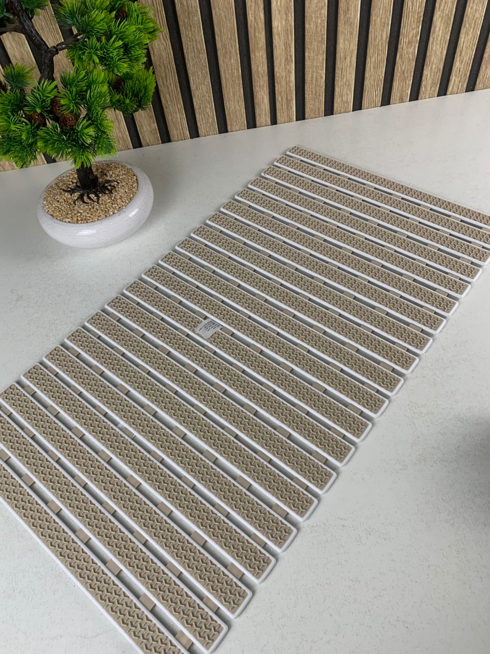 تحتوي الحصيرة على مئات فتحات التصريف التي تسمح بمرور الماء والصابون بسهولة، مما يمنع تجمع المياه حول القدمين ويحافظ على سطح جاف وآمن.