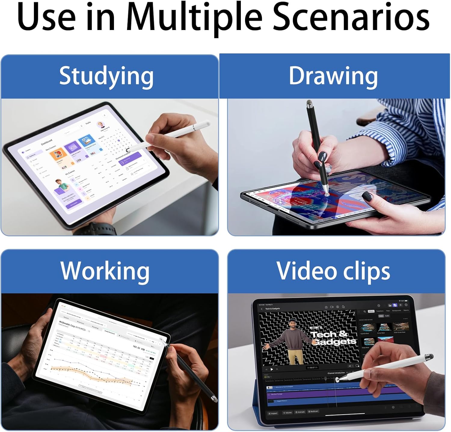 - توافق مطلق (Universal): يعمل القلم بكفاءة عالية مع جميع أنواع الأجهزة اللوحية، سواء كنت تستخدم نظام Android أو iOS (iPad)، مما يجعله الخيار المثالي مهما كان نوع جهازك.