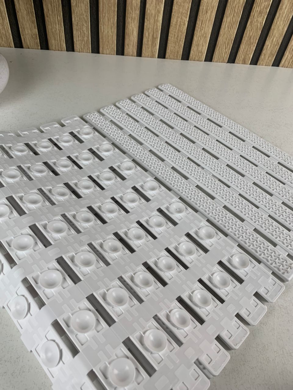 تحتوي الحصيرة على مئات فتحات التصريف التي تسمح بمرور الماء والصابون بسهولة، مما يمنع تجمع المياه حول القدمين ويحافظ على سطح جاف وآمن.