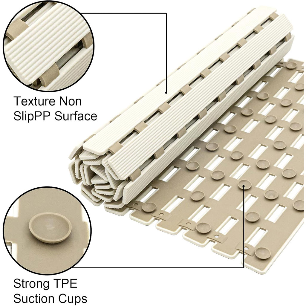 تم تزويد حصيرة الدش هذه بـ مئات الشفاطات القوية التي تضمن التصاقًا ممتازًا بالأسطح الملساء والنظيفة. تصميمها المضاد للانزلاق يجعلها مثالية للاستخدام في المنزل، الحمّام، النادي الرياضي، السبا وغيرها من الأماكن الرطبة.