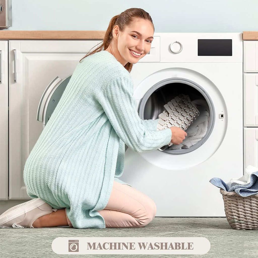 تتميز الحصيرة بتصميم مخطط عصري وأنيق، لا يضيف لمسة جمالية فقط، بل يعزز أيضًا قوة التماسك ويقلل من خطر الانزلاق، مما يوفر حماية أفضل لجميع أفراد العائلة.